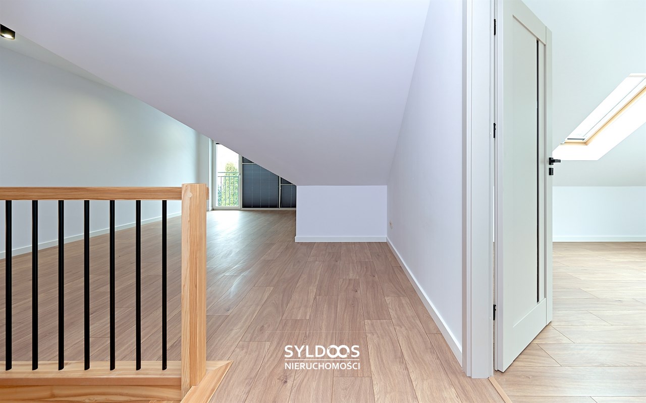 Poddasze - ok 60m2: 3 pomieszczenia: pokój, kotłownia i open space. Na poddaszu jest i balkon i klimatyzacje, co nie zdarza się często.