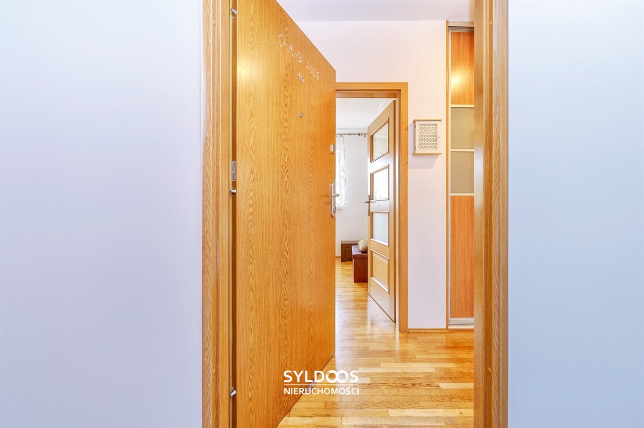 Przedpokój z szafą lub miejscem na garderobę.