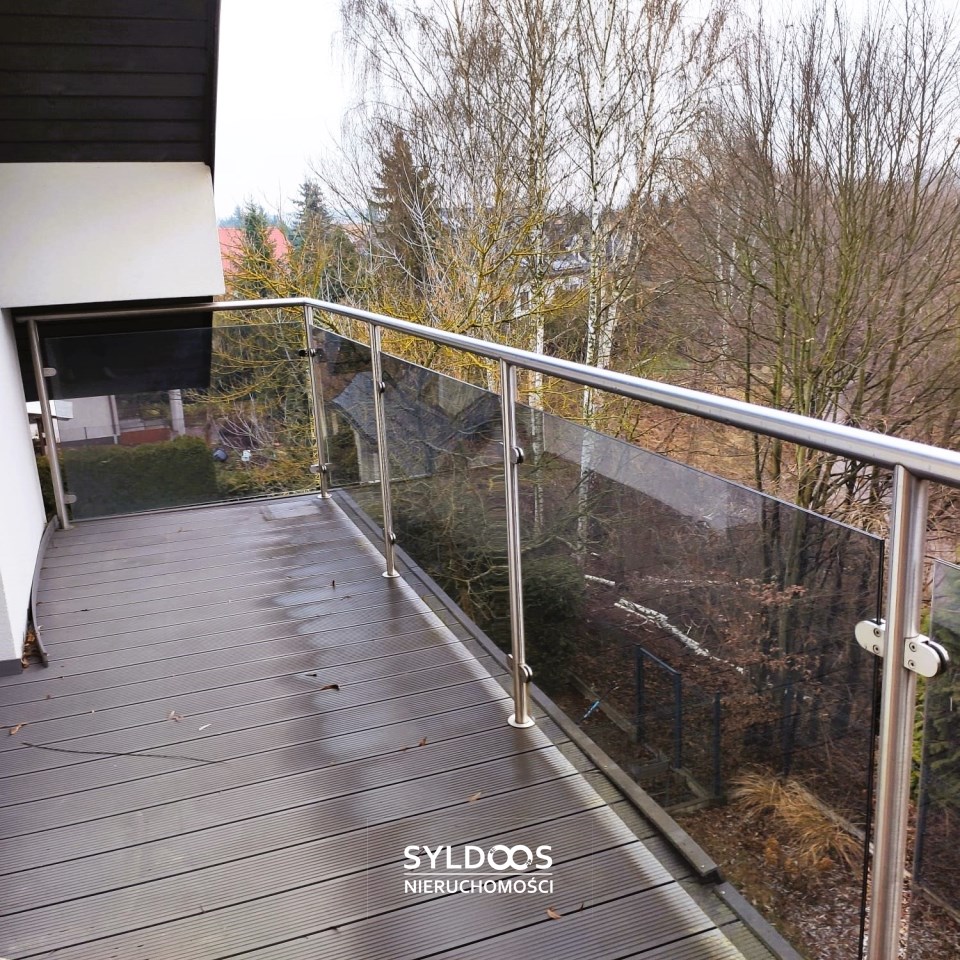 - salon z dużym balkonem, z przyjemnym widokiem na las