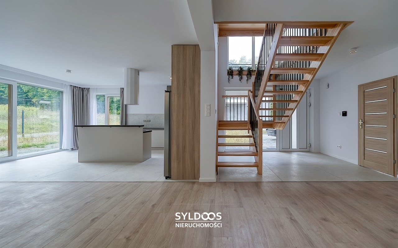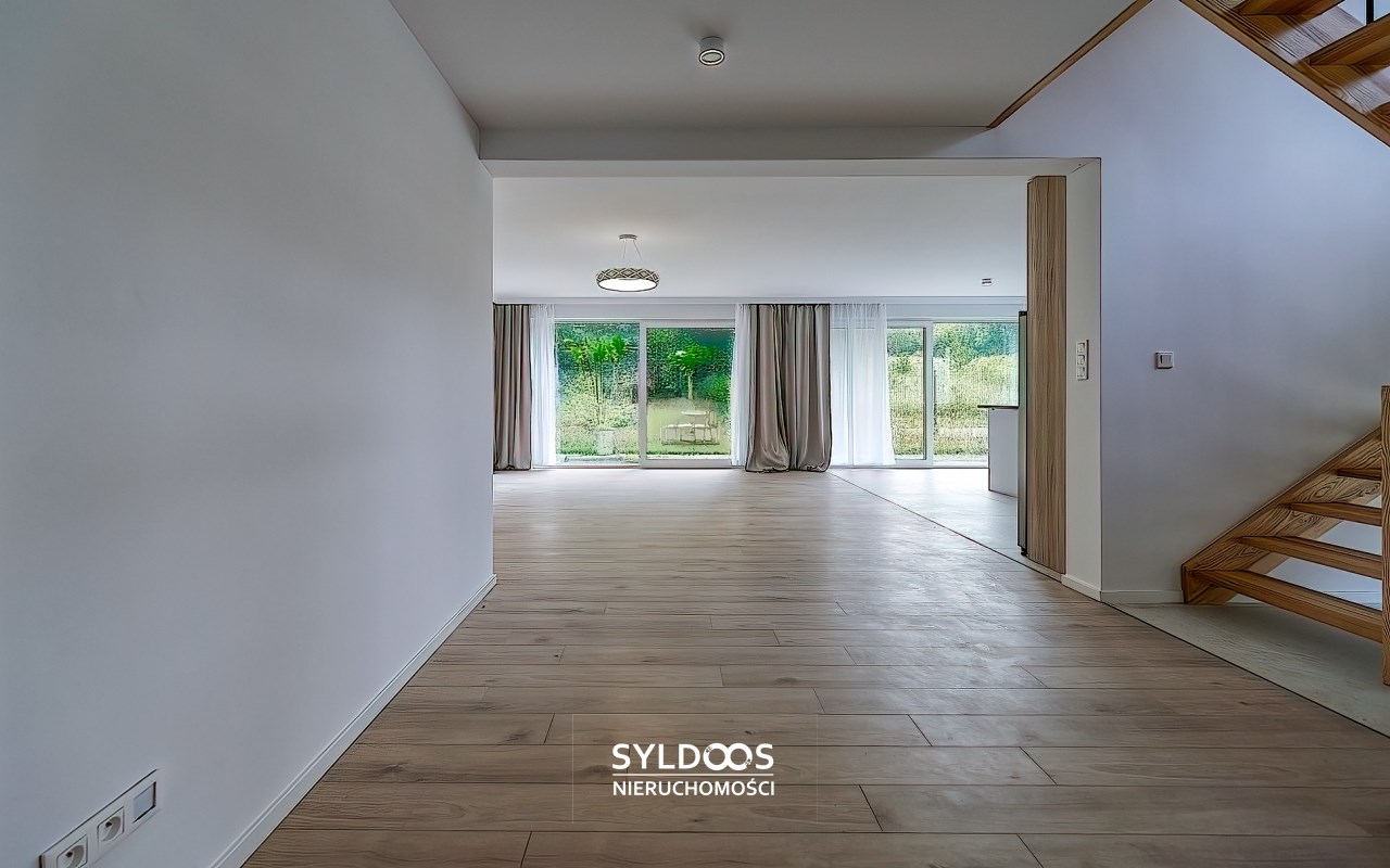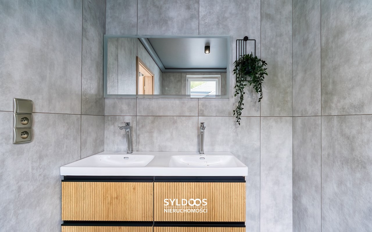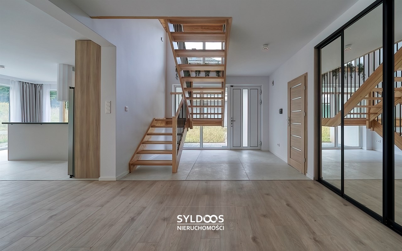Duży, przestronny, z bardzo funkcjonalnym układem pomieszczeń, każda sypialnia ma własną łazienkę. Bardzo wysoki standard wykończenia. Wszystkie pokoje bardzo ładnie doświetlone, klimatyzacja, system alarmowy, ogrzewanie podłogowe, garaż 2 stanowiskowy, dodatkowe miejsce parkingowe na terenie posesji.
