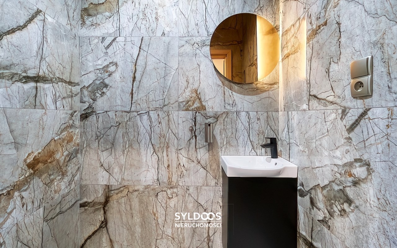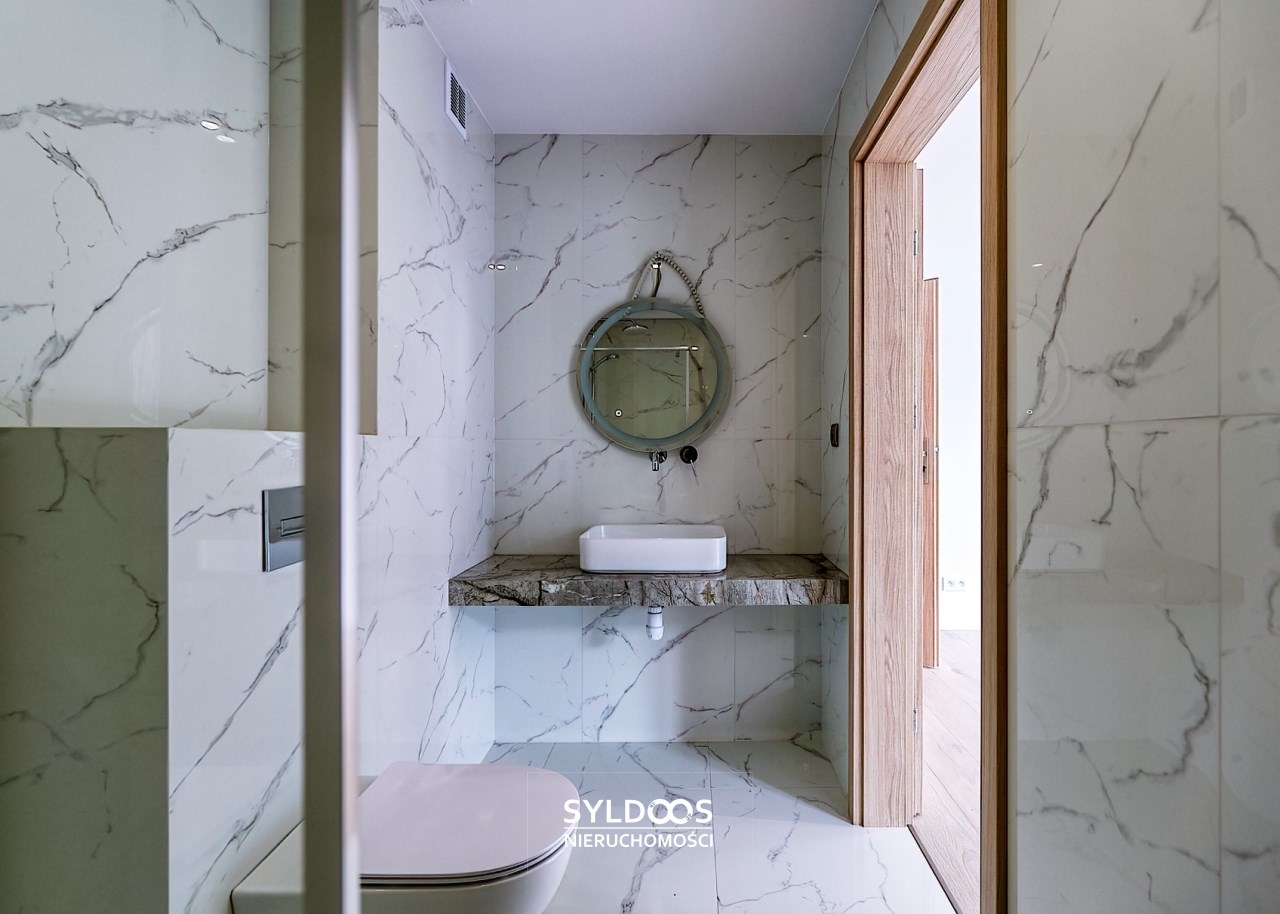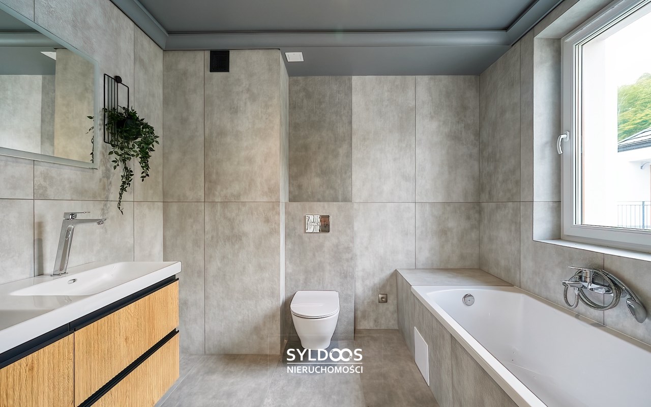 Duży, przestronny, z bardzo funkcjonalnym układem pomieszczeń, każda sypialnia ma własną łazienkę. Bardzo wysoki standard wykończenia. Wszystkie pokoje bardzo ładnie doświetlone, klimatyzacja, system alarmowy, ogrzewanie podłogowe, garaż 2 stanowiskowy, dodatkowe miejsce parkingowe na terenie posesji.
