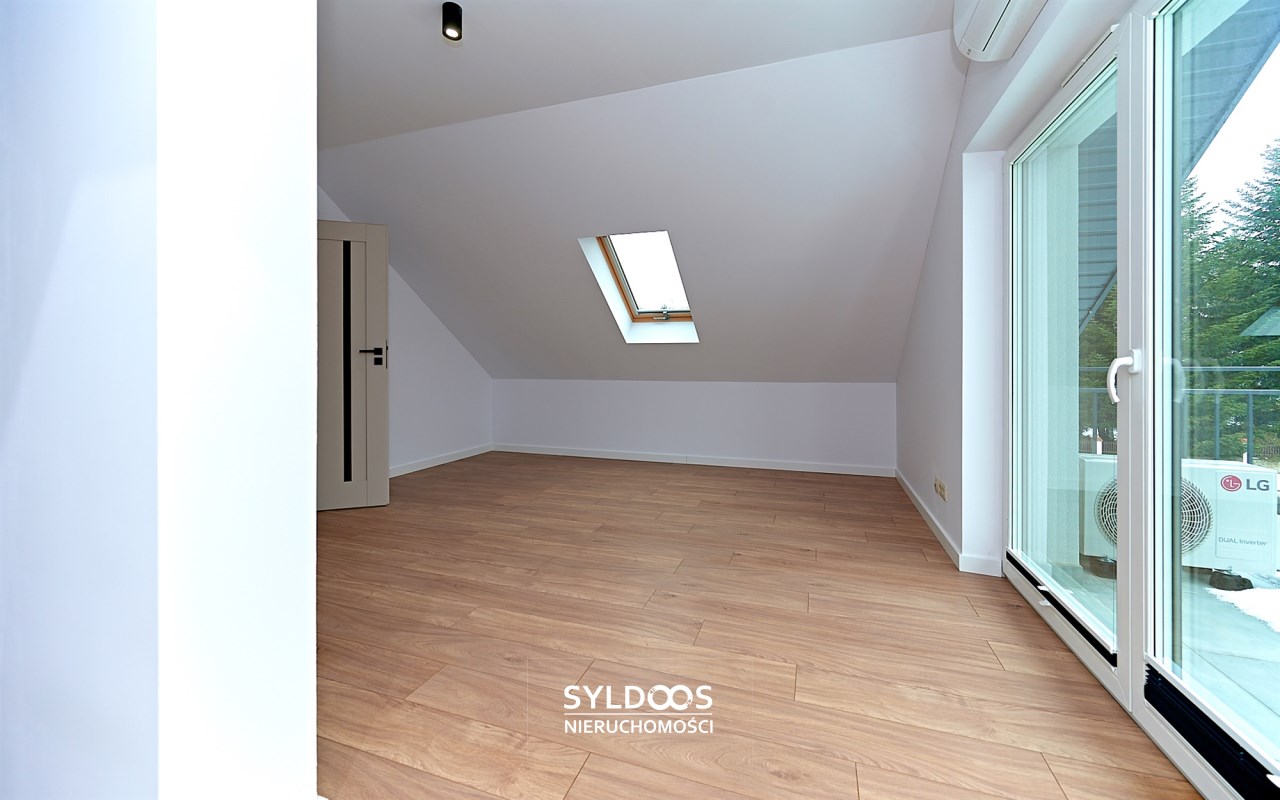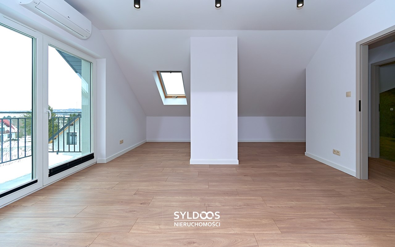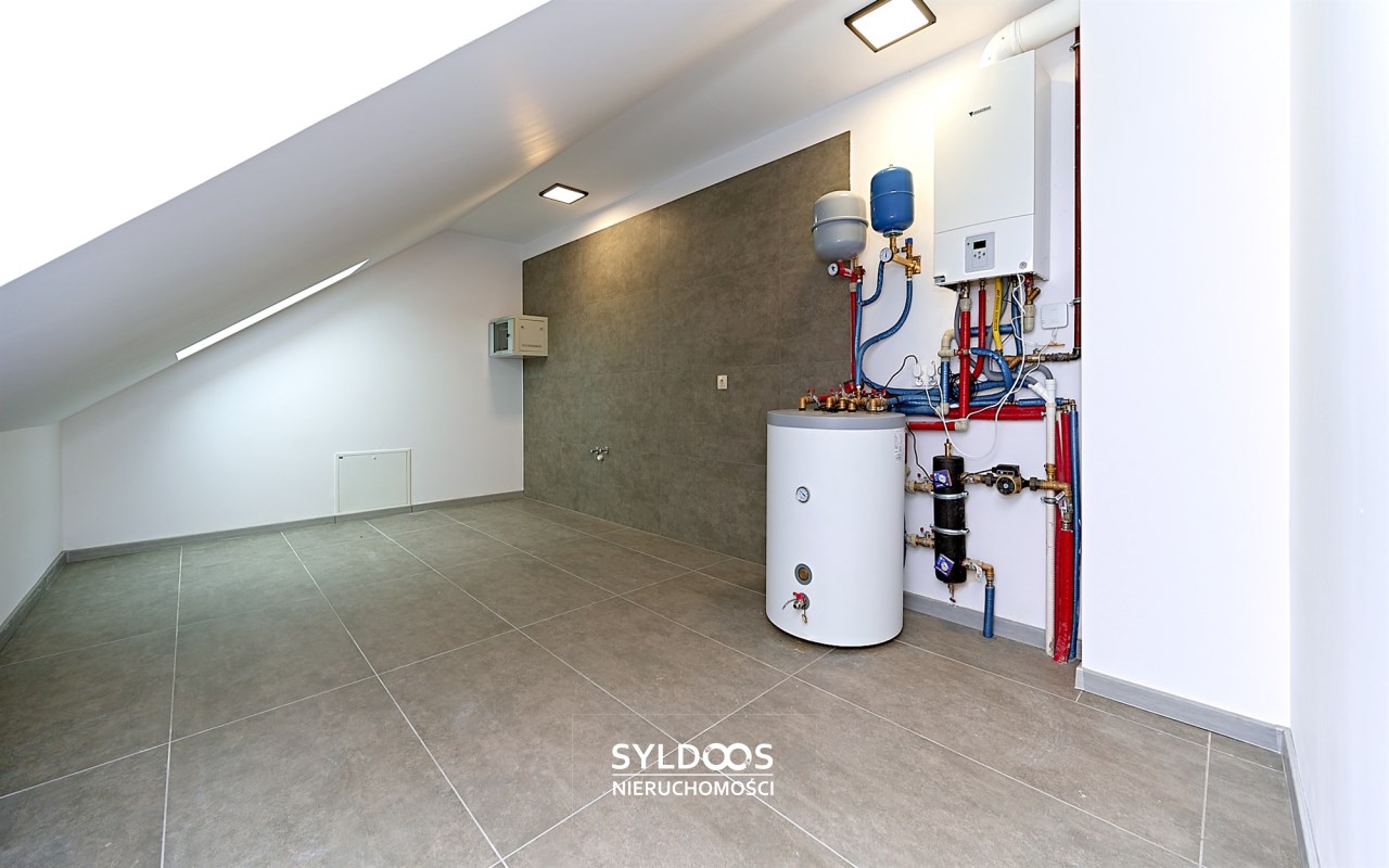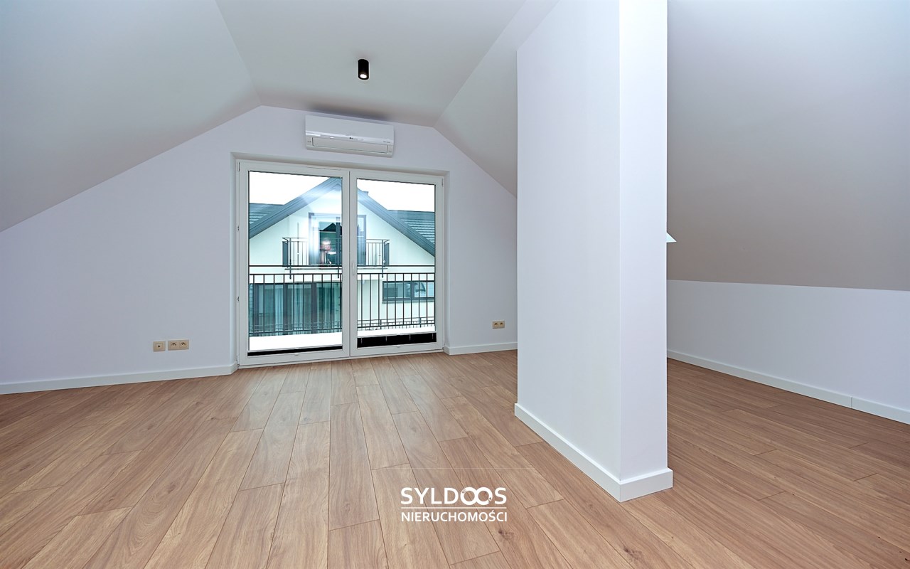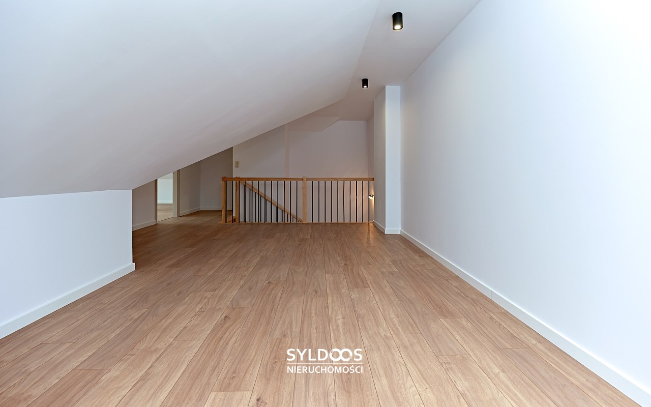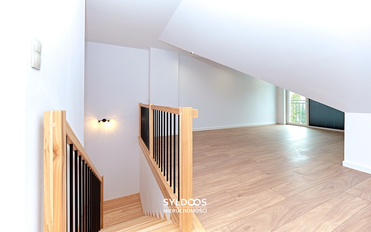 Poddasze - ok 60m2: 3 pomieszczenia: pokój, kotłownia i open space. Na poddaszu jest i balkon i klimatyzacje, co nie zdarza się często.