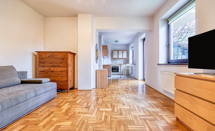 Ta przytulna kawalerka o powierzchni 28 m² znajduje się w pięknej okolicy, naprzeciwko parku Willi Decjusza. Mieszkanie położone jest w kameralnym, ogrodzonym kompleksie przy ul. Królowej Jadwigi 217 B, idealnie łącząc komfort życia w zielonej okolicy z szybkim dostępem do centrum Krakowa (dojazd zajmuje zaledwie 12–15 minut).
