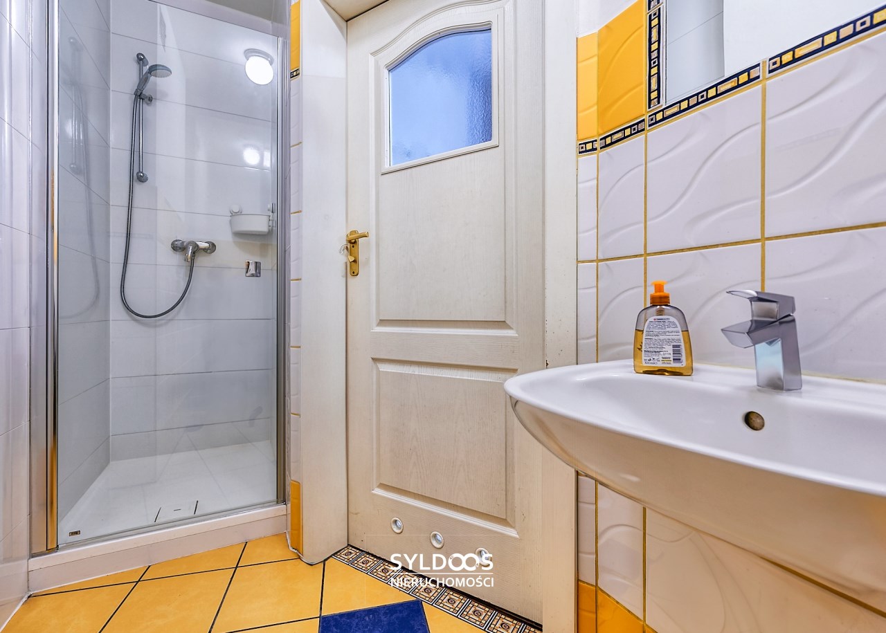 Kawalerka znajduje się na pierwszym piętrze budynku z dwiema kondygnacjami. Posiada trzy przestronne okna, które wpuszczają mnóstwo naturalnego światła. W części mieszkalnej znajdziesz aneks kuchenny wyposażony w meble, lodówkę, pralkę i dwupunktową płytę grzewczą. W środku jest także stół i krzesła, a na oknach zamontowane są rolety. Łazienka z prysznicem, toaletą i umywalką wykończona jest kafelkami, podobnie jak część kuchenna. Praktyczna wnęka z zabudowaną dużą szafą oraz 2 rozkładane sofy do spania dopełniają przestrzeń mieszkalną.