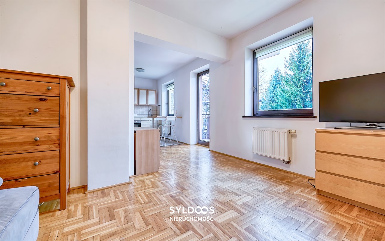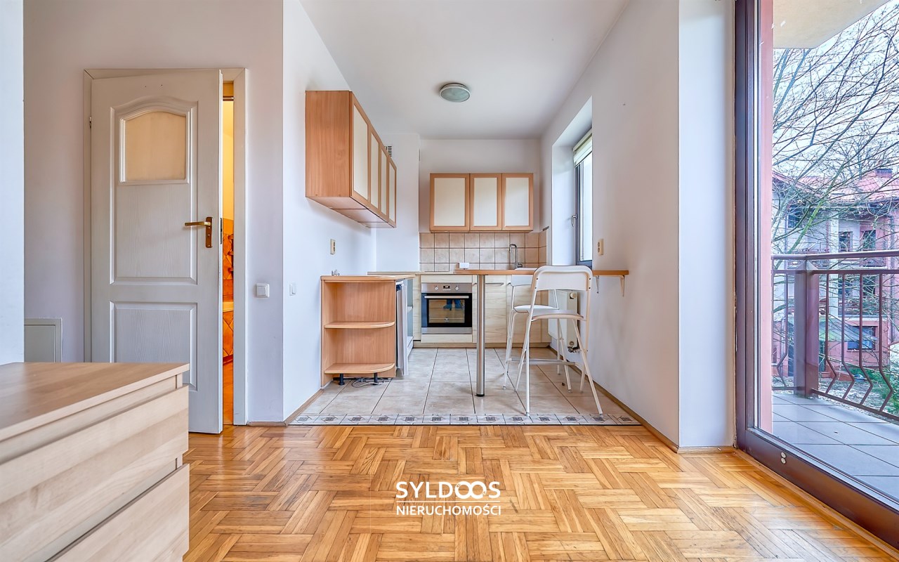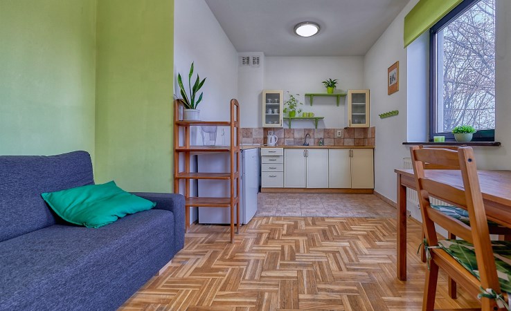 Funkcjonalne wnętrze - Mieszkanie o powierzchni 28,5 m² znajduje się na pierwszym piętrze dwupiętrowego apartamentowca. Składa się z jednego pokoju z wyjściem na balkon, aneksu kuchennego, niewielkiego przedpokoju z pojemną szafą oraz łazienki z wanną.