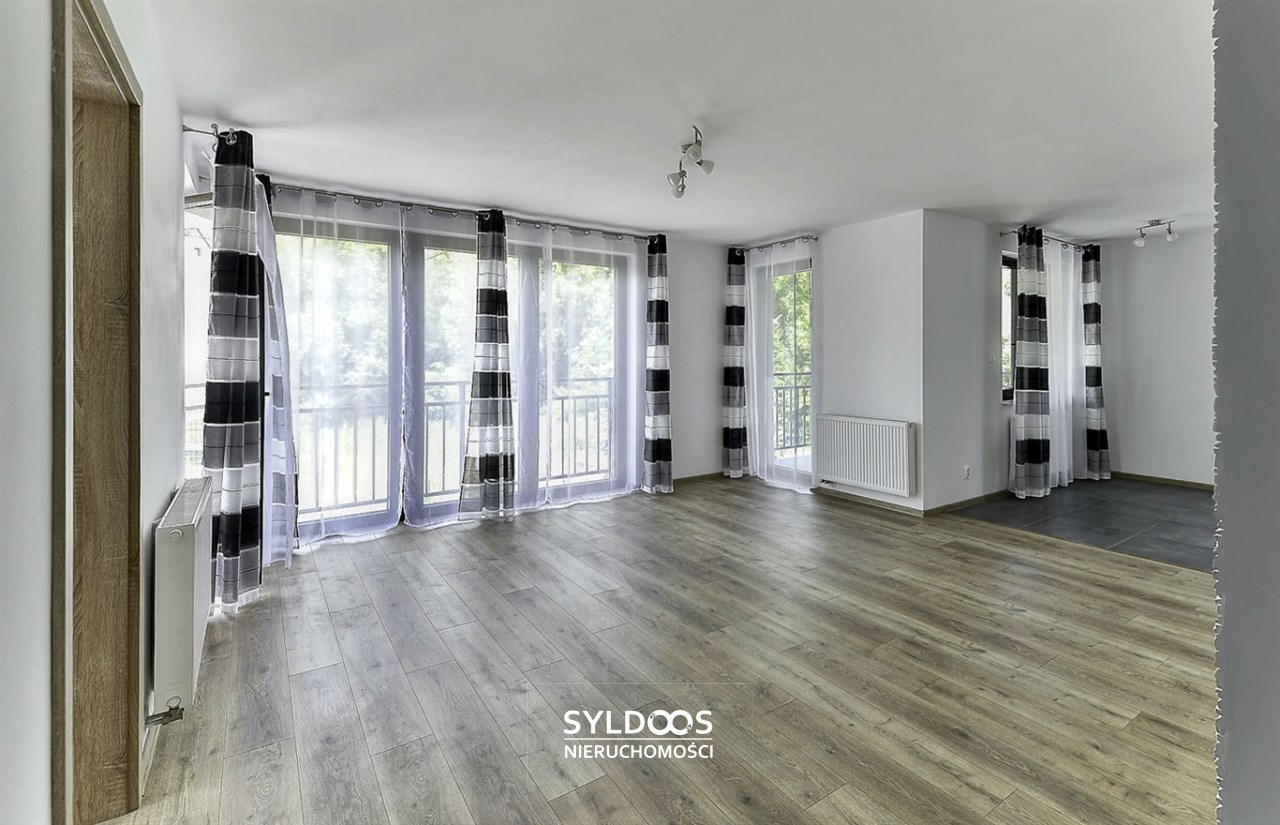 Całkowicie wyposażona kuchnia i łazienki, pokoje nieumeblowane.